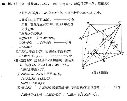 21.求直线AB1与平面B1CP所成角的余弦值。