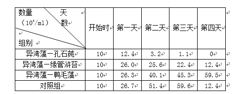 1.异湾藻是常见单细胞赤潮藻类,科研人员为研究大型海藻对异湾藻的生长是否有抑制作用,将异湾藻与三种大型海藻分别混合培养于适宜的条件下,每天测量异湾藻数量变化,结果如下。以下分析错误的是( )