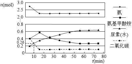 (2)某实验小组模拟工业上合成尿素的条件,在一体积为0.5 L密闭容器中投入4 mol氨和1mol二氧化碳,实验测得反应中各组分的物质的量随时间的变化如下图所示: