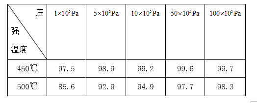 根据表中数据,在温度一定时,压强越大,二氧化硫的转化率越高,但增加的幅度不大,在压强一定时,温度越高转化率越小,考滤生成成本等因素,所以选择的条件是450℃,1×105Pa,故答案为:450℃;1×105Pa;