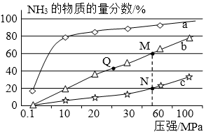 ⑵及时分离出NH3可以促使反应正向进行,A正确;温度相同时,平衡常数也相同,分析可知曲线b, c对应的温度分别为400℃,600℃,温度的升高促使反应逆向进行,使平衡常数K减小,B正确;相同压强下,温度越高,反应速率越快,C错误;N点时c(NH3)=0.2mol·L-1,NH3的物质的量分数为20%,又反应器中按n(N2):n(H2)=1:3投料,可求得平衡时N2与H2的物质的量浓度分别为0.2mol·L-1与0.6mol·L-1,求得N点的化学平衡常数K≈0.93L2/mol2,D正确。