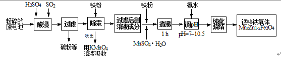 锰锌铁氧体是应用广泛的高性能磁性材料。现以a kg废旧碱性锌锰电池为原料(含锰元素的物质:MnO2占b %,MnOOH占c %)制备锰锌铁氧体,主要流程如下: