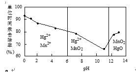 第一空:根据题目所限制的条件,找到pH<6(酸性条件)是锰的元素和汞元素的存在形式再书写离子方程式。