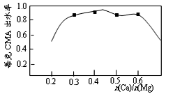 10.已知CMA中钙、镁的物质的量之比与出水率(与融雪效果成正比)关系如右图所示,步骤④的目的除调节n(Ca)∶n(Mg)约为____________(选填:1∶2;3∶7;2∶3)外,另一目的是 。