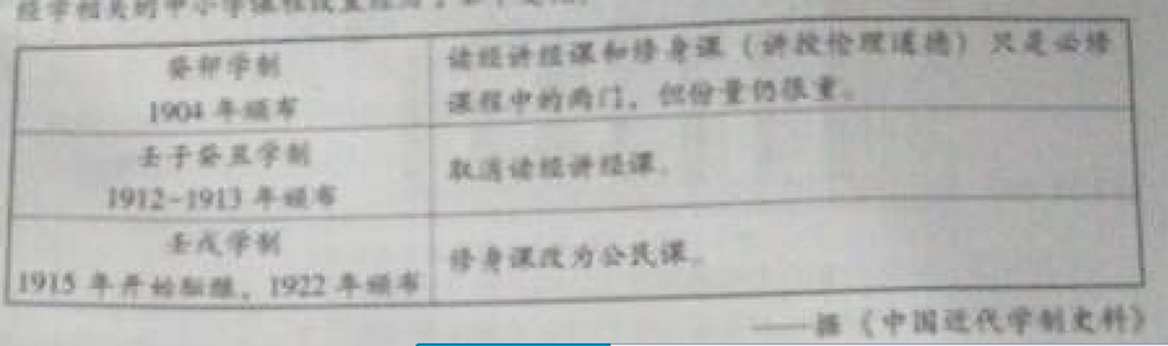 材料二 课程设置是学校教育制度(学制)的重要内容,与经学相关的中小学课程设置经历了如下变化。