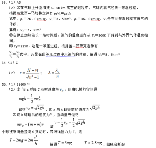 (2)气象探测气球,在充有压强为1.00 atm(即76.0 cmHg)、温度为27.0℃的氦气时,体积为3.50m3.在上升至海拔6.50 km高空的过程中,气球内氦气压强逐渐减小到此高度上的大气压36.0 cmHg,气球内部因启动一持续加热过程而维持其温度不变.此后停止加热,保持高度不变.已知在这一海拔高度气温为-48.0℃.求: