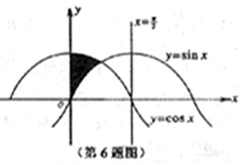 域内任取一点,则该点落在x=0,y=sinx及y=cosx