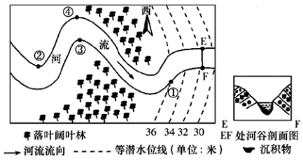 5.下图甲为大陆东岸的某河段示意图,图乙为图甲中EF处的河床横断面图。