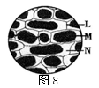 24.用质量浓度为0.3g/mL的蔗糖溶液浸润紫色洋葱鳞片叶外表皮,1分钟后在显微镜下观察到如图8所示的结果。下列叙述正确的是( )