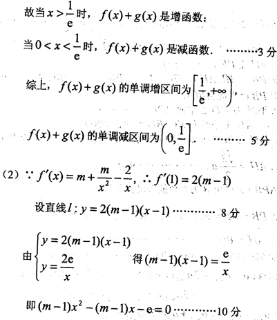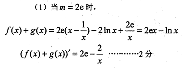 (1)当m=2e时,求f(x)+g(x)的单调区间;