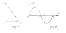 34.(6分,选对1个给3分,选对2个给6分,每选错1个扣3分,最低得分为0分)如图甲所示,在水平面内,有三个质点a、b、c分别位于直角三角形的三个顶点上,已知ab=6 m,ac=8 m。在“t1=0时刻a、b同时开始振动,振动图象均如图乙所示,所形成的机械波在水平面内传播,在t2=4s时c点开 始 振 动 ( )