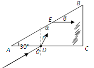 在E点发生反射,则有∠α=30°.可知∠r=30°.