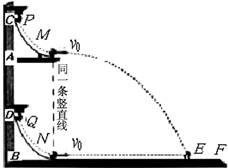 如图所示为某实验探究小组所设计的实验装置:BF是水平光滑的轨道,两个相同的弧形光滑轨道M、N分别用于发射小铁球P、Q,两轨道上端分别装有电磁铁C、D,调节电磁铁C、D的高度,使AC = BD,从而保证小铁球P、Q在轨道出口处的水平初速度v0相等。将小铁球P、Q分别吸在电磁铁C、D上,然后切断电源,使两小铁球能以相同的初速度v0同时分别从轨道M、N的下端水平射出。根据你学的知识判断:
