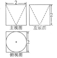 即一个正方体中间去掉一个圆锥体,所以它的体积是