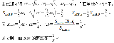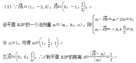 (3)由题意知,点C到平面B1DP的距离是点C到平面DB1A的距离, 设此距离为h.