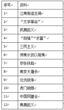 (4)阅读下表中的资料,围绕爱国,提炼出一个涵盖若干条资料的主题,并将符合该主题的资料序号挑选出来,结合所学,补充一条符合该主题的新资料并加以简单阐释。