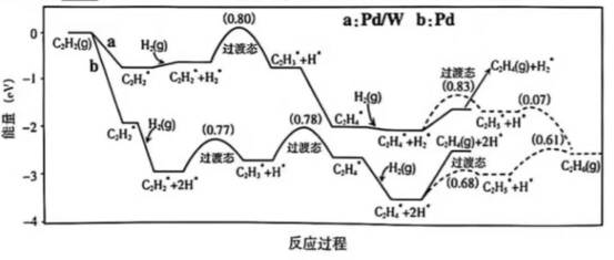 (4)Pd/W 生成乙烷的活化能更高,所以更易生成乙烯。