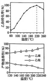(2)温度升高反应加快 温度过高使催化剂活性降低,反应速率减慢 乙烯的选择型高于乙烷,所以反应一的转化速率更高
