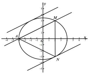 如图所示,当直线与椭圆相切时,与AM距离比较远的直线与椭圆的切点为N,此时△AMN的面积取得最大值.