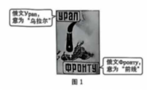 图1是1942年的一幅苏联宣传画,描绘的情景是:乌拉尔生产的钢铁被制成炸弹,摧毁了前线的德军坦克。该宣传画反映出 ( )