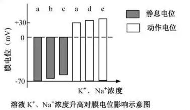 (要求与说明:已知蛙坐骨神经纤维的静息电位为-70 mV,兴奋时动作电位从去极化到反极化达+30 mV。测量的是膜内外的电位变化。K+、Na+浓度在一定范围内提高。实验条件适宜)