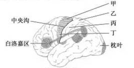 16.人的一侧大脑皮层外侧面示意图如下,图中甲、乙、丙和丁表示部位。某人的右腿突然不能运动,经医生检查后,发现他的右腿无力。推测该患者大脑皮层的受损部位可能位于图中的( )