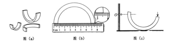 图(a)为一套半圆拱形七色彩虹积木示意图,不同颜色的积木直径不同。某同学通过实验探究这套积木小幅摆动时周期T与外径D之间的关系。