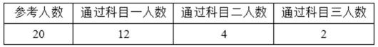 18. 公安部最新修订的《机动车驾驶证申领和使用规定》于2013年1月1日起正式实施,新规实施后,获取驾照要经过三个科目的考试,先考科目一(理论一),科目一过关后才能再考科目二(桩考和路考),科目二过关后还要考科目三(理论二).只有三个科目都过关后才能拿到驾驶证.某驾校现有100名新学员,第一批参加考试的20人各科目通过的人数情况如下表: