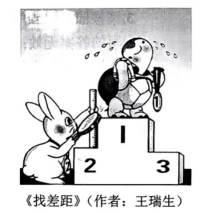 龟兔赛跑的寓言故事在中国广为人知,漫画(图)描绘了比赛结束后兔子在领奖台“找差距”的情境。兔子在此所犯的错误是( )