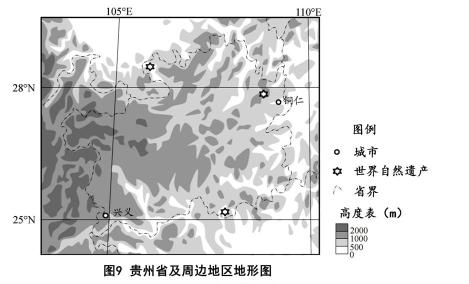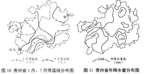 (3)兴义与铜仁相比,冬季气温高,夏季气温低,分析其形成原因。(8分)