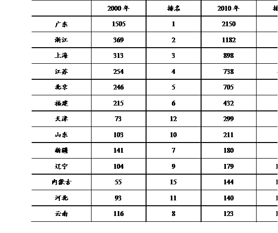 表1 2000和2010年我国部分省区跨省流入人口数量统计表(万人)