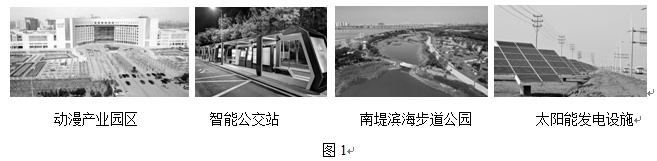 1.在中新天津生态城发展特色的描述中,与图1中的景观依次对应的是( )