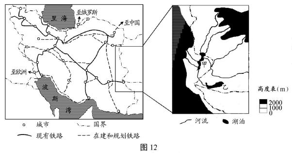 (1)说明伊朗铁路路网的建设和改造对促进改国经济发展的作用。(6分)