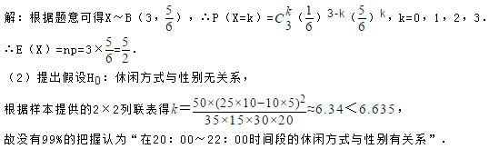 (2)根据以上数据,吉永老师能否有99%的把握认为“在20:00~21:00时间段的休闲方式与性别有关系”?