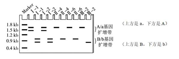 (3)分析该家系成员的基因型与两个基因的PCR扩增产物凝胶电泳图,由Ⅲ-2的基因型为aabb可确定基因a、b所对应的条带,进而推出基因A、B所对应的条带。如图