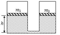 (2)如图所示,两个可导热的气缸竖直放置,它们的底部都由一细管连通(忽略细管的容积)。两气缸各有一个活塞,质量分别为m1和m2,活塞与气缸无摩擦。活塞的下方为理想气体,上方为真空。当气体处于平衡状态时,两活塞位于同一高度h.(已知m1=2m,m2=m)