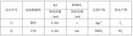 B.对比反应①和②,考察氧化还原反应电荷数守恒,②消耗高锰酸钾的量是①的10倍,KI不变。由A可知