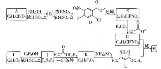 除草剂苯嘧磺草胺的中间体M合成路线如下。