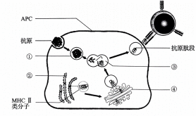 下图表示某抗原呈递细胞(APC)摄取、加工处理和呈递抗原的过程,其中MHCⅡ类分子是呈递抗原的蛋白质分子。下列叙述正确的是( )