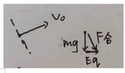过程:由若初速度防线沿虚线,则直线运动,推理出电场力的方向,如图。