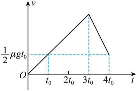 过程:如图,t=3t0时木板速度突变,显然此时物块滑上木板,A正确;小物块在t0时间内速度变化量为2μgt0,故加速度a=2μgt0/t0=2μg,因为f=ma=μ1mg(μ1表示小物块与木板之间的动摩擦因素),故B正确;分别对突变前后进行分析,如图所示,C错误;