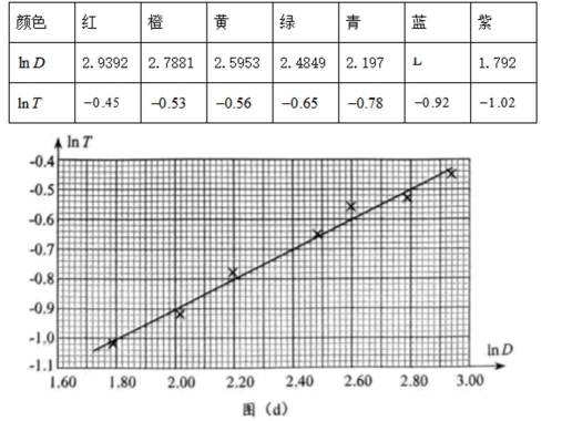 (3)换用其他积木重复上述操作,测得多组数据。为了探究T与D之间的函数关系,可用它们的自然对数作为横、纵坐标绘制图像进行研究,数据如下表所示:
