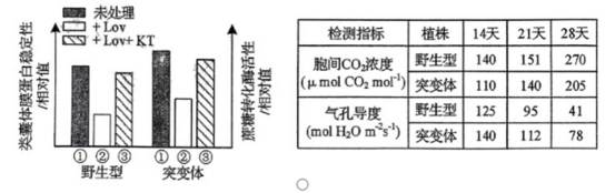 (2) 低 ; 突变体的气孔导度较小,导致二氧化碳供应不足,限制了光合作用的进行;