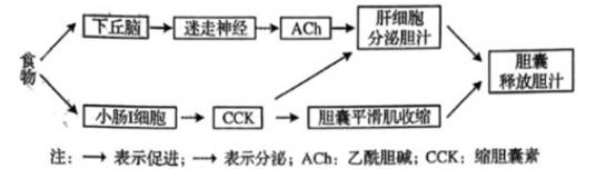 由肝细胞合成分泌、胆囊储存释放的胆汁属于消化液,其分泌与释放的调节方式如图所示。