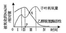 本题考查的是细胞呼吸的相关知识,包括有氧呼吸和无氧呼吸的过程、影响因素等,同时还涉及到对图表的分析理解能力。p 点之后乙醇脱氢酶活性下降,耗氧量增加,说明此时无氧呼吸减弱,有氧呼吸增强,可推测 p 点为种皮被突破的时间点,使氧气能更多进入,A选项正确。Ⅱ阶段种子耗氧量增加,说明氧气浓度是增加的,而不是降低,B选项错误。Ⅲ阶段乙醇脱氢酶活性下降,说明无氧呼吸减弱,那么无氧呼吸合成乙醇的速率应是逐渐减小,C选项错误。g 处耗氧量大于 0,说明此时有氧呼吸占优势,无氧呼吸比有氧呼吸分解的葡萄糖少,D选项错误。