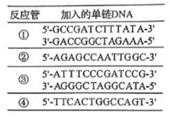 本题考查的是DNA 探针的制备、DNA 复制、碱基互补配对原则。在只含大肠杆菌 DNA 聚合酶、扩增缓冲液、H2O 和 4 种脱氧核苷酸(dCTP、dTTP、dGTP 和碱基被荧光标记的 dATP)的反应管中,分别加入适量单链 DNA。已知形成的双链 DNA 区遵循碱基互补配对原则,且在本实验的温度条件下不能产生小于 9 个连续碱基对的双链 DNA 区。能得到带有荧光标记的 DNA 探针的反应管有①和④,C 选项正确。
