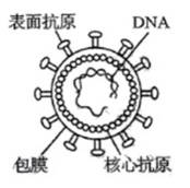 乙型肝炎病毒(HBV)的结构模式图如图所示。HBV与肝细胞吸附结合后,脱去含有表面抗原的包膜,进入肝细胞后再脱去由核心抗原组成的衣壳,大量增殖形成新的HBV,释放后再感染其他肝细胞。下列说法正确的是