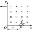 12.如图所示,在xOy坐标系的第一象限内存在匀强磁场。一带电粒子在P点以与x轴正方向成60的方向垂直磁场射入,并恰好垂直于y轴射出磁场。已知带电粒子质量为m、电荷量为q,OP = a。不计重力。根据上述信息可以得出