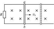 7.如图所示,在竖直向下的匀强磁场中,水平U型导体框左端连接一阻值为R的电阻,质量为m、电阻为r的导体棒ab置于导体框上。不计导体框的电阻、导体棒与框间的摩擦。ab以水平向右的初速度v0开始运动,最终停在导体框上。在此过程中