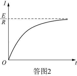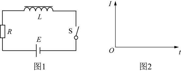(2)情境2:如图1所示,电源电动势为E,线圈自感系数为L,电路中的总电阻为R。闭合开关S,发现电路中电流I随时间t的变化规律与情境1中物体速率v随时间t的变化规律类似。类比①式,写出电流I随时间t变化的方程;并在图2中定性画出I - t图线。